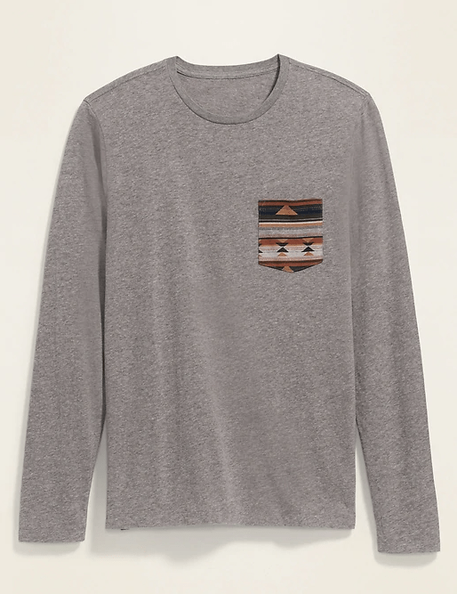 - Soft-Washed Patterned-Pocket Long-Sleeve Tee